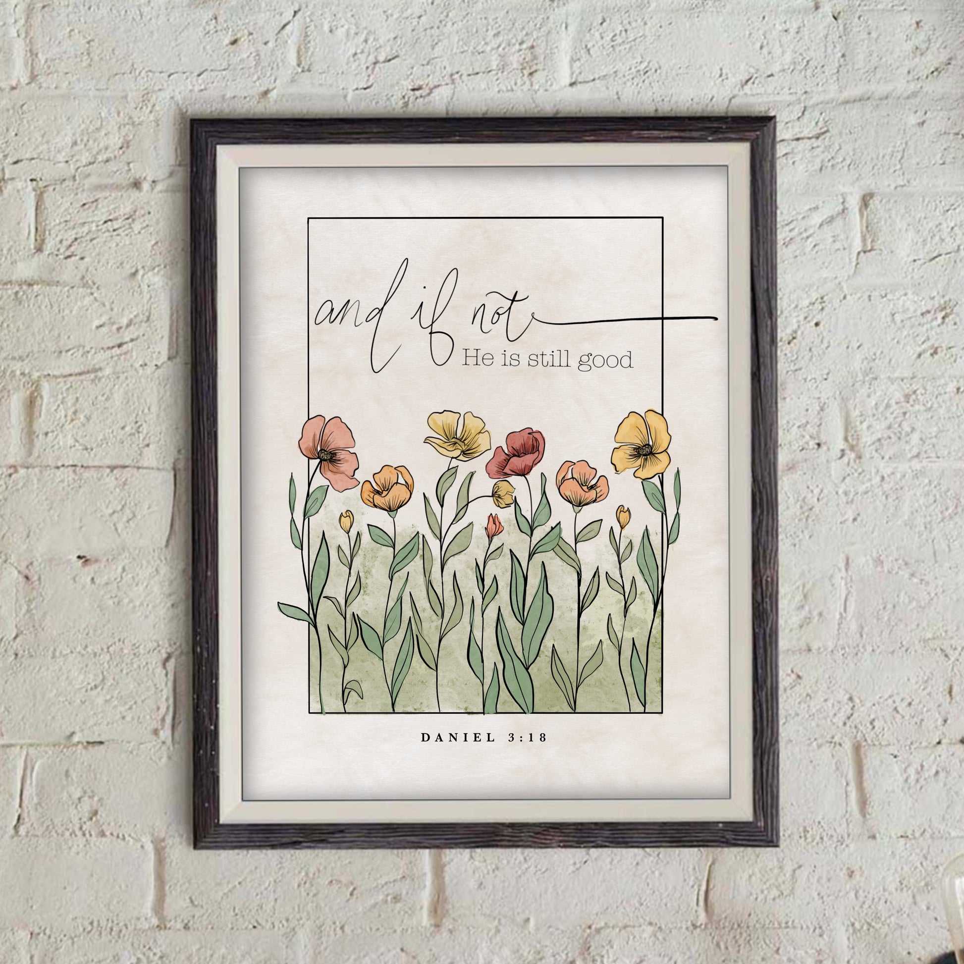 Flowers growing beneath the quote represent trust that grows even when prayers aren't answered the way we hope. This piece was born out of wrestling with God during my cancer journey — learning to say, “Even if healing doesn’t come… even if the outcome is unknown… He is still good.”
