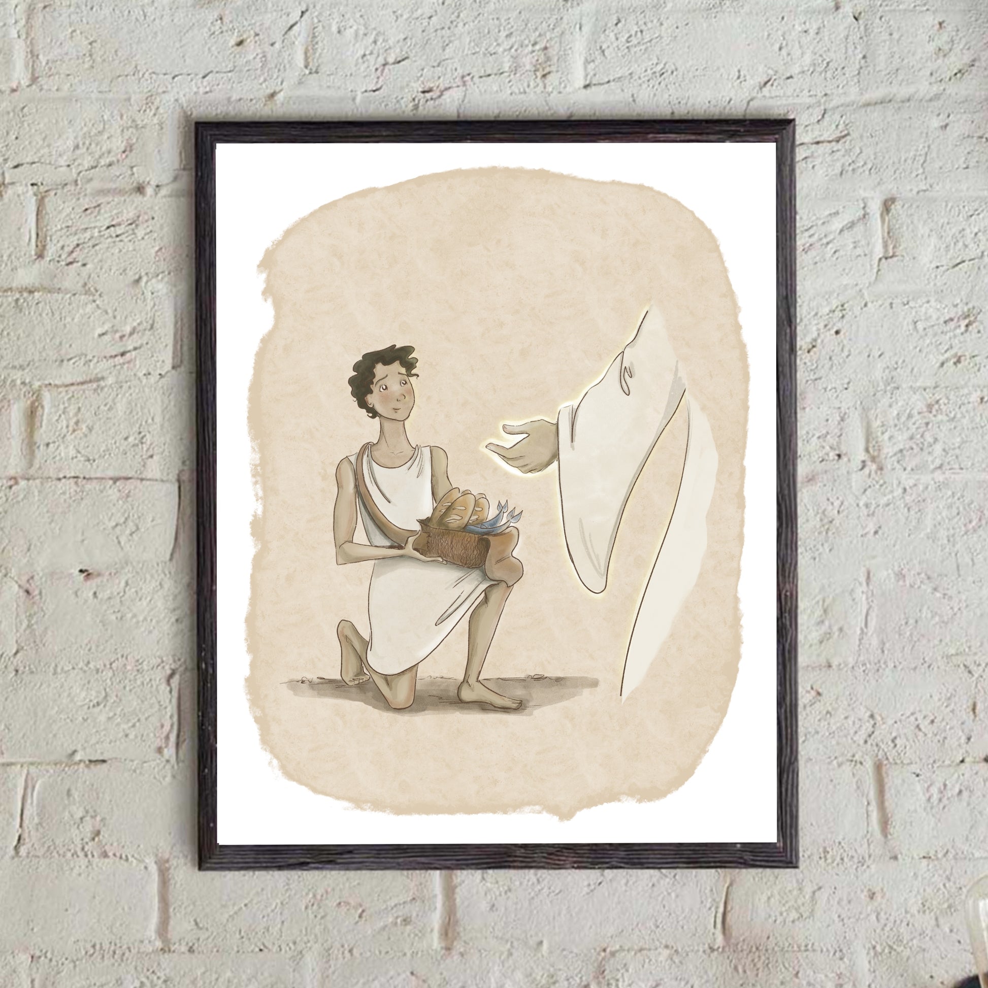 Boy with Loaves and Fish - Jesus Miracles and Ministry - Begin with the Bible - Bible Print
