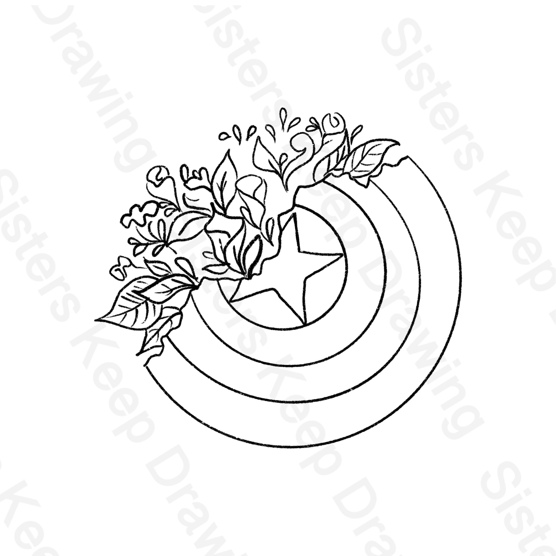 Captain's Shield with Flowers - Marvel-Tattoo Transparent Permission PNG- instant download digital printable artwork
