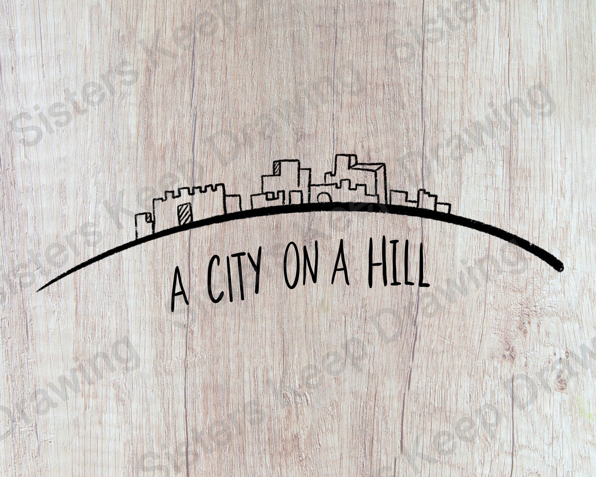 City on a Hill- Tattoo Transparent PNG- instant download digital printable artwork