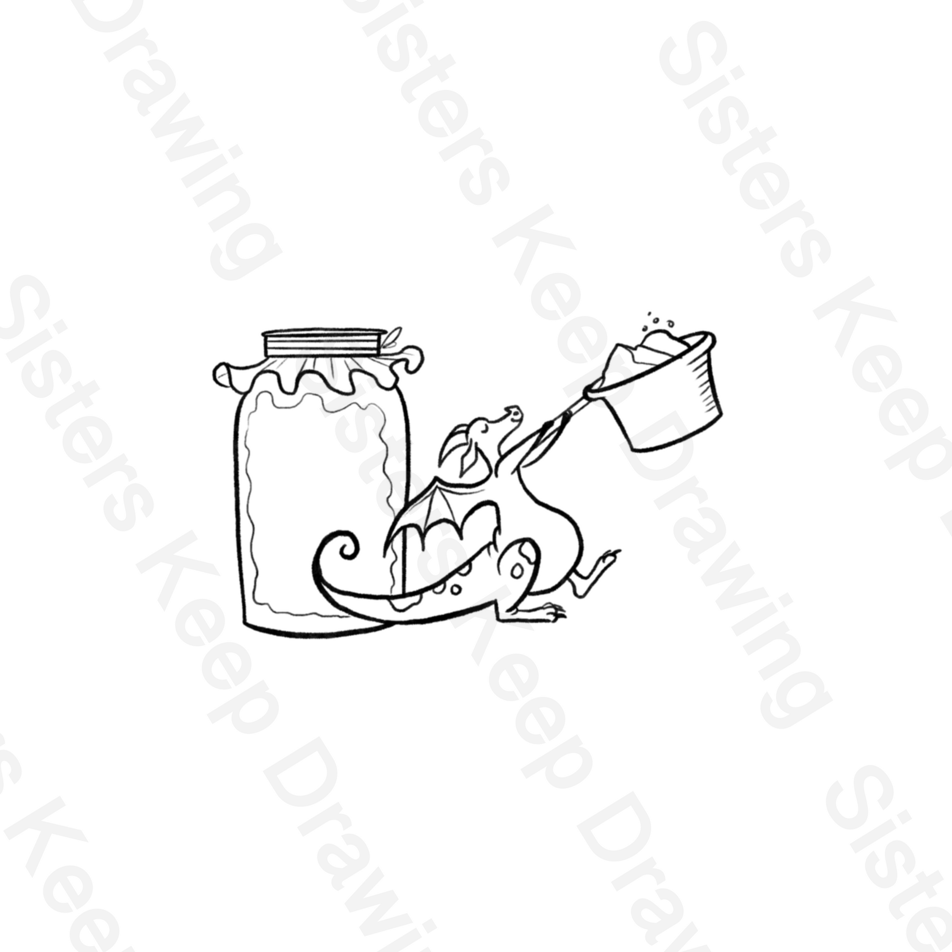 Tiny Dragon feeding sourdough starter Tattoo Transparent Permission PNG- instant download digital printable artw