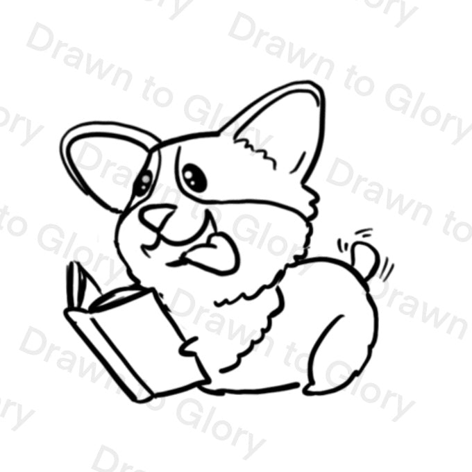 Corgi reading a book - Tattoo Transparent PNG- instant download