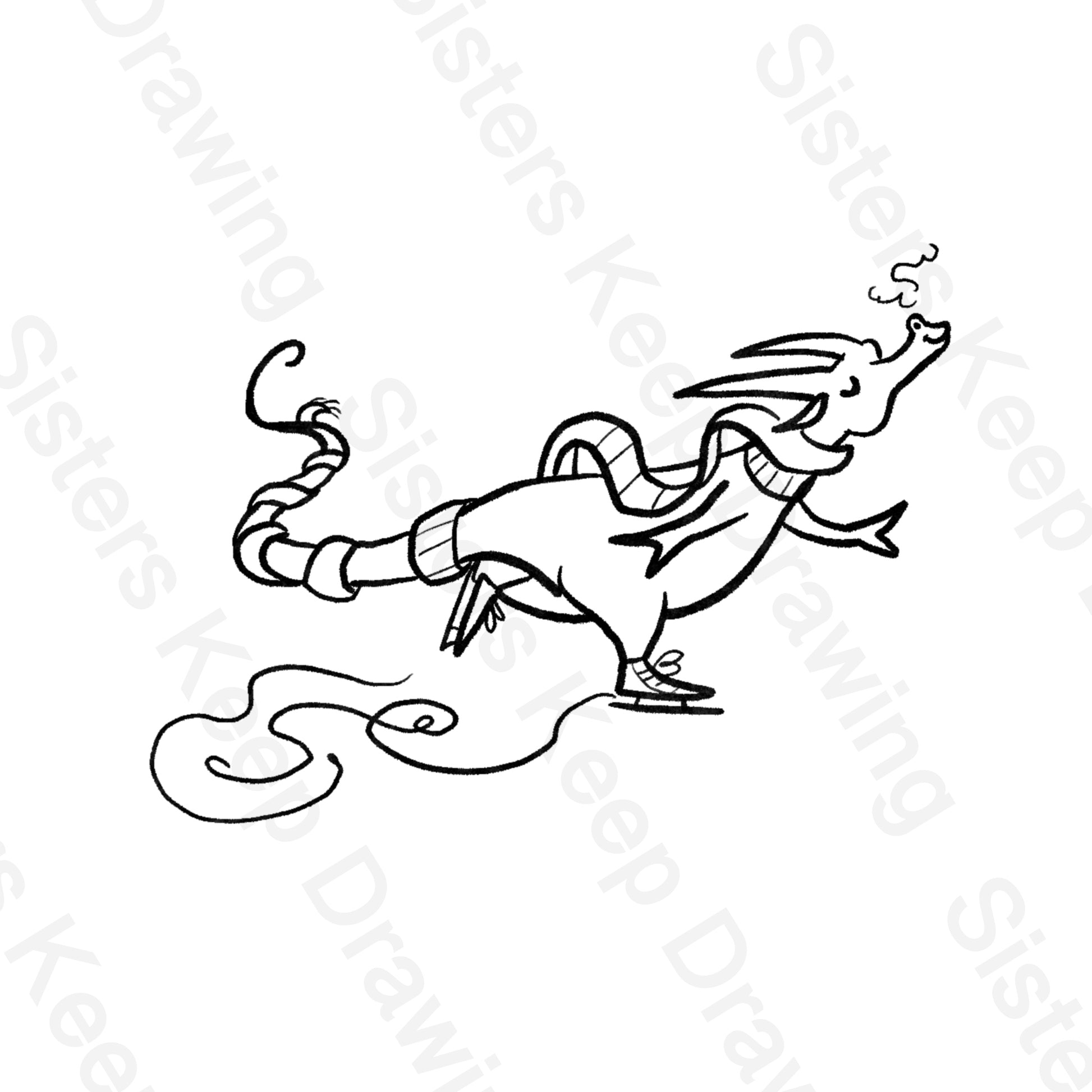 Tiny Dragon Ice Skating - Tattoo Transparent Permission PNG- instant download digital printable artwork