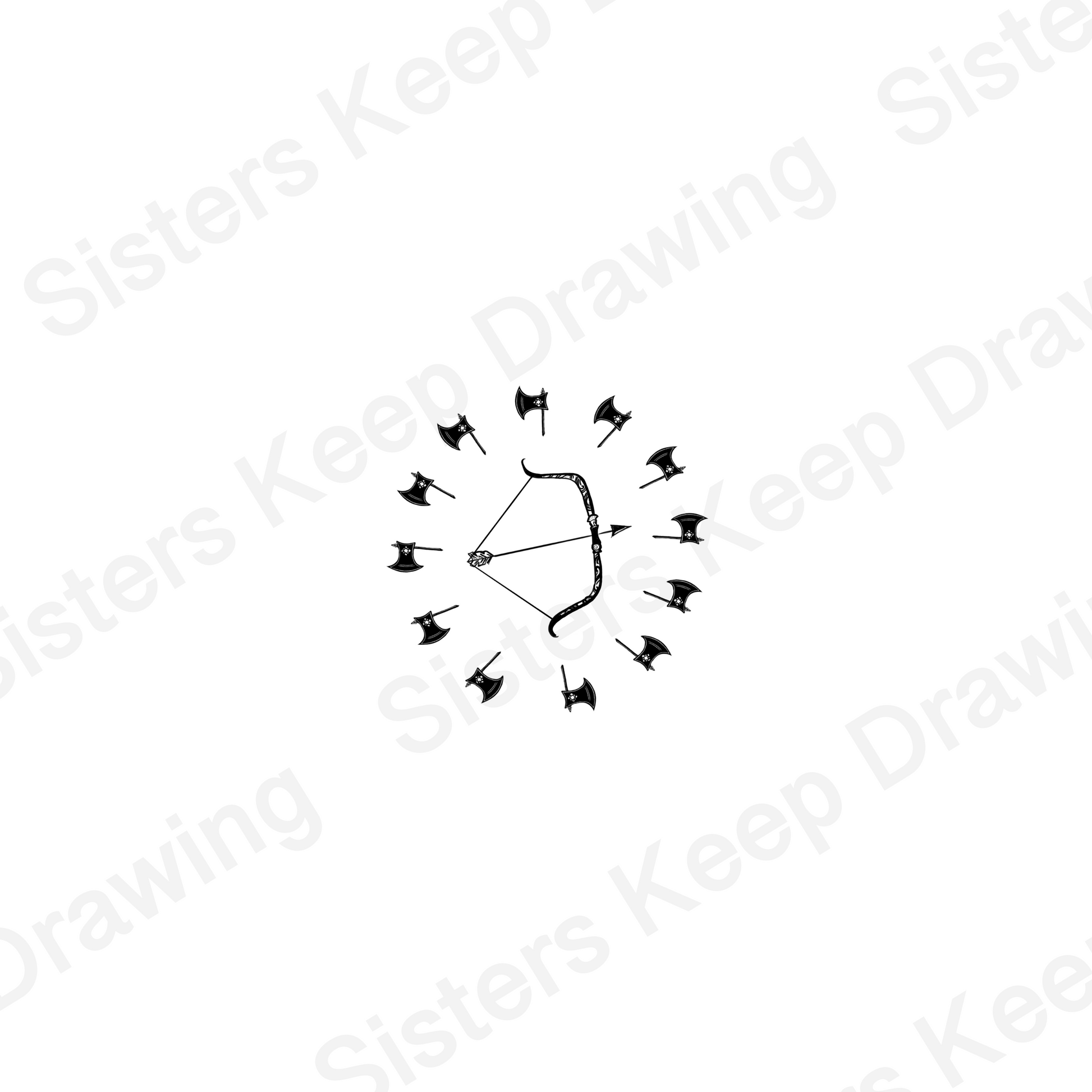 Ody's Bow + Pen's 12 Axes - Epic Musical Inspired Tattoo Transparent PNG- instant download digital printable artwork