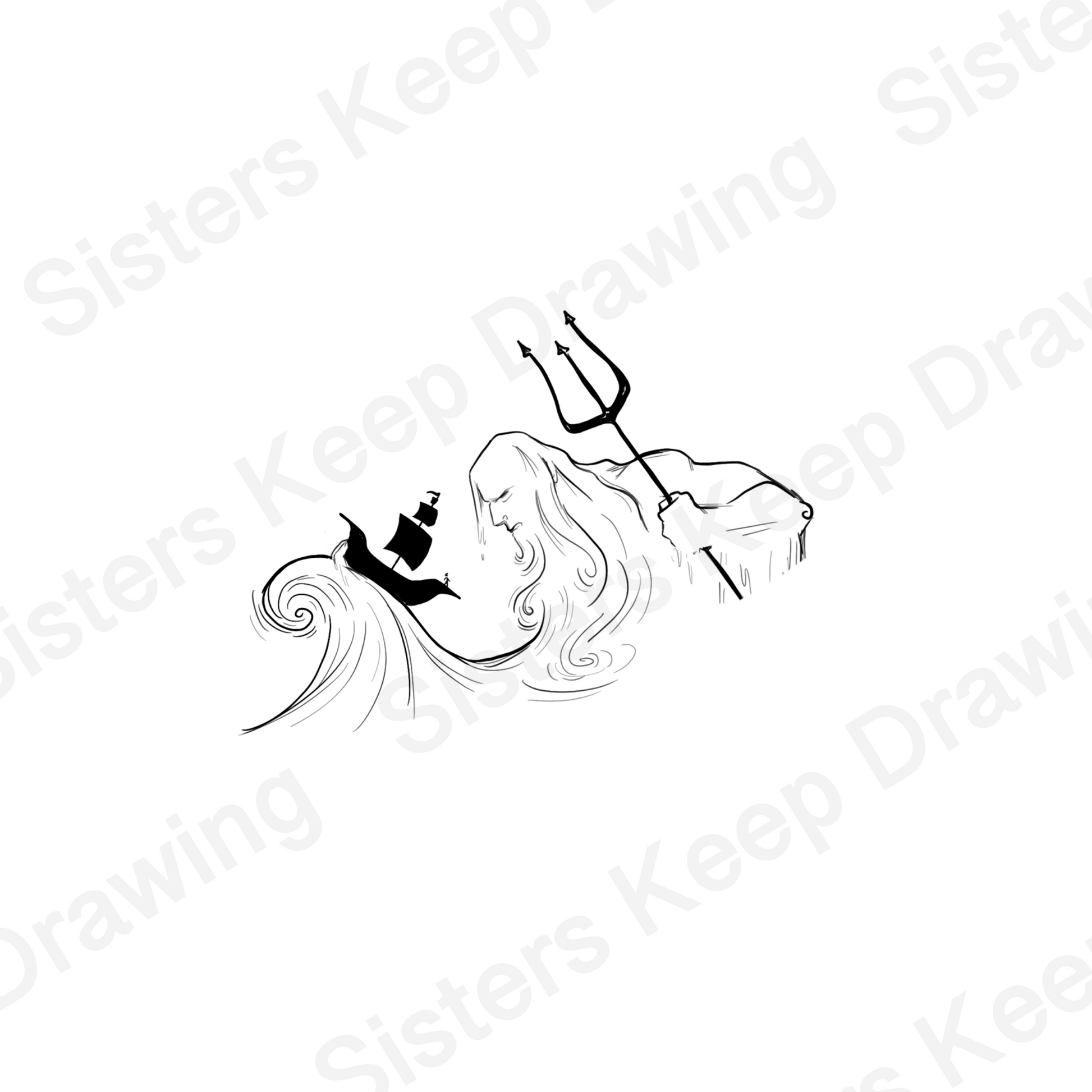 Poseidon with Ship - Epic Musical Inspired Tattoo Transparent PNG- instant download digital printable artwork