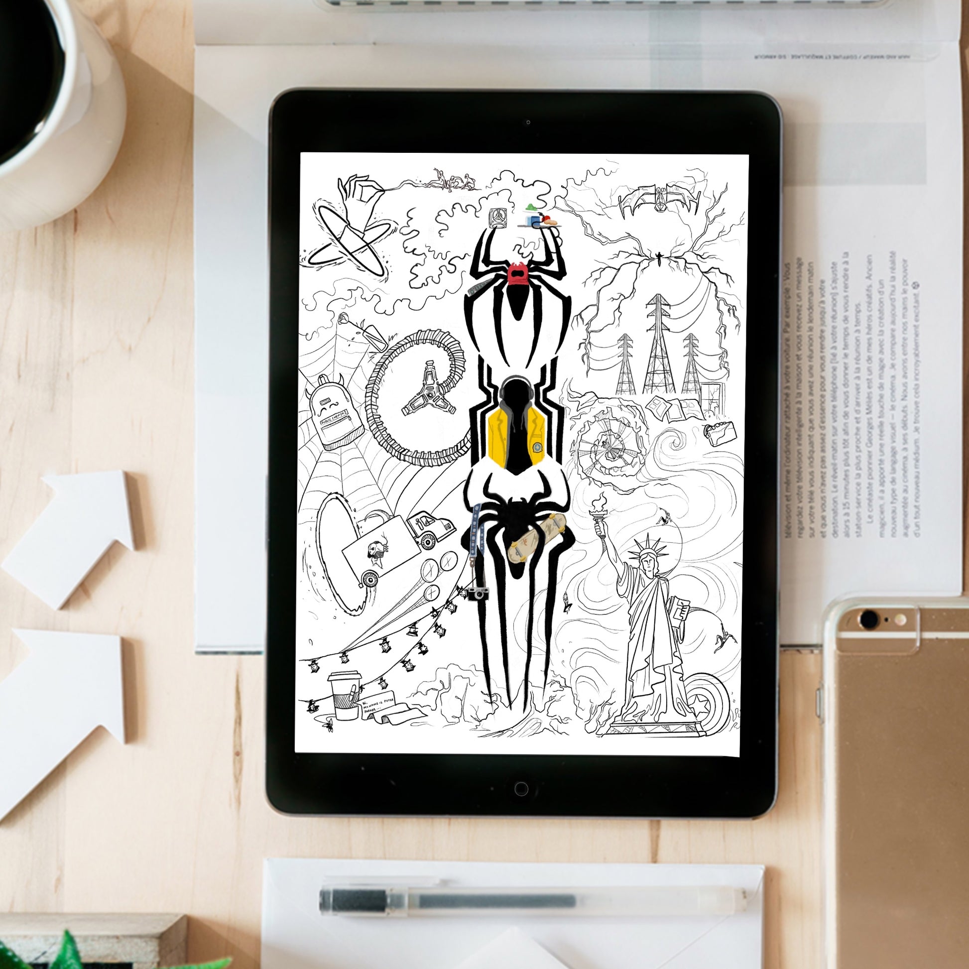 Spider Coloring Page/poster- instant download digital printable artwork
