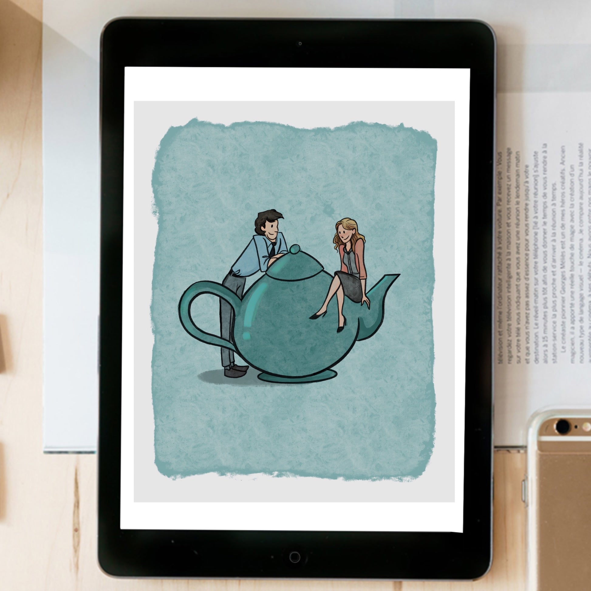 The Office Pam and Jim by a Teapot - instant download digital printable artwork