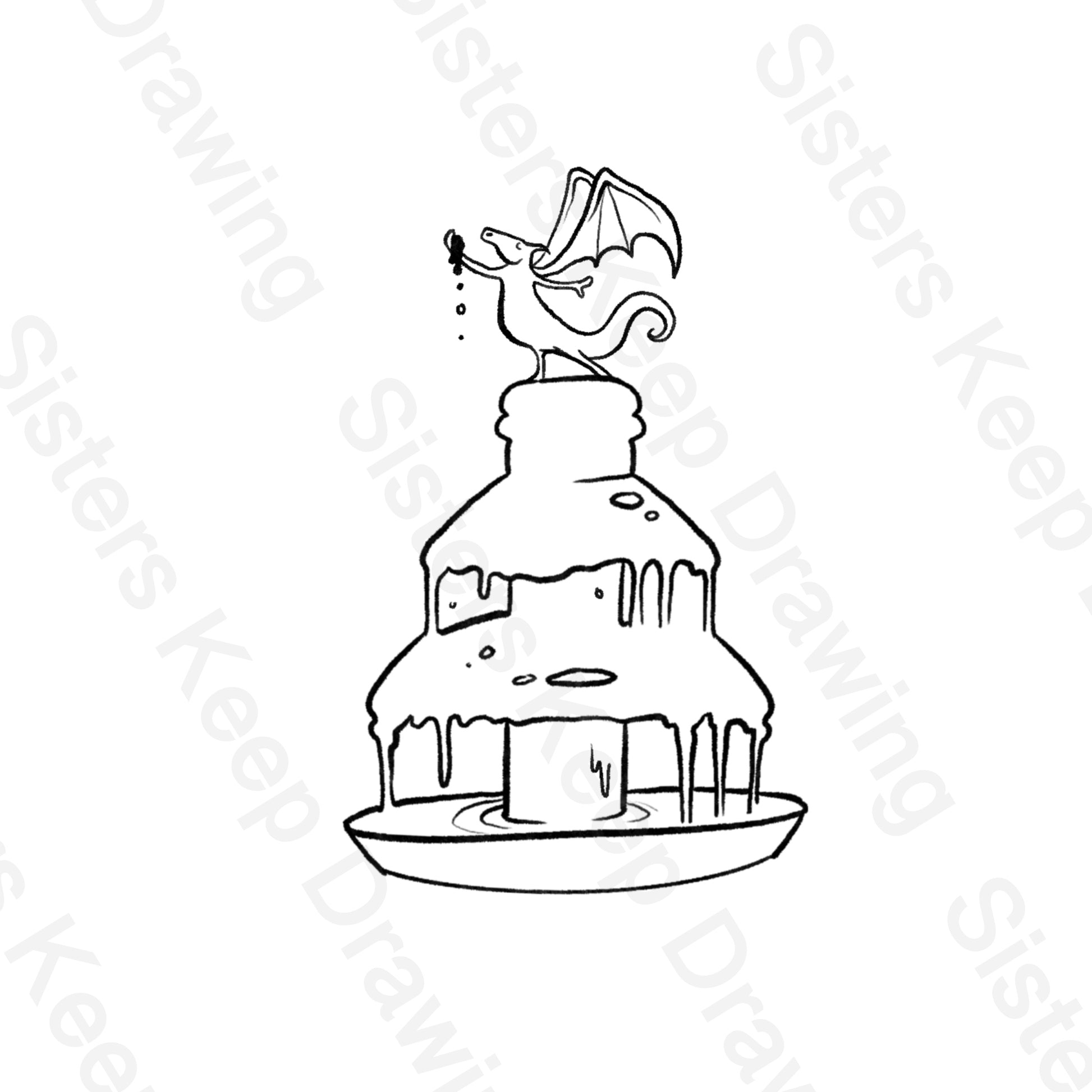 Tiny Dragon dancing on chocolate fountian -Tattoo Transparent Permission PNG- instant download digital printable art