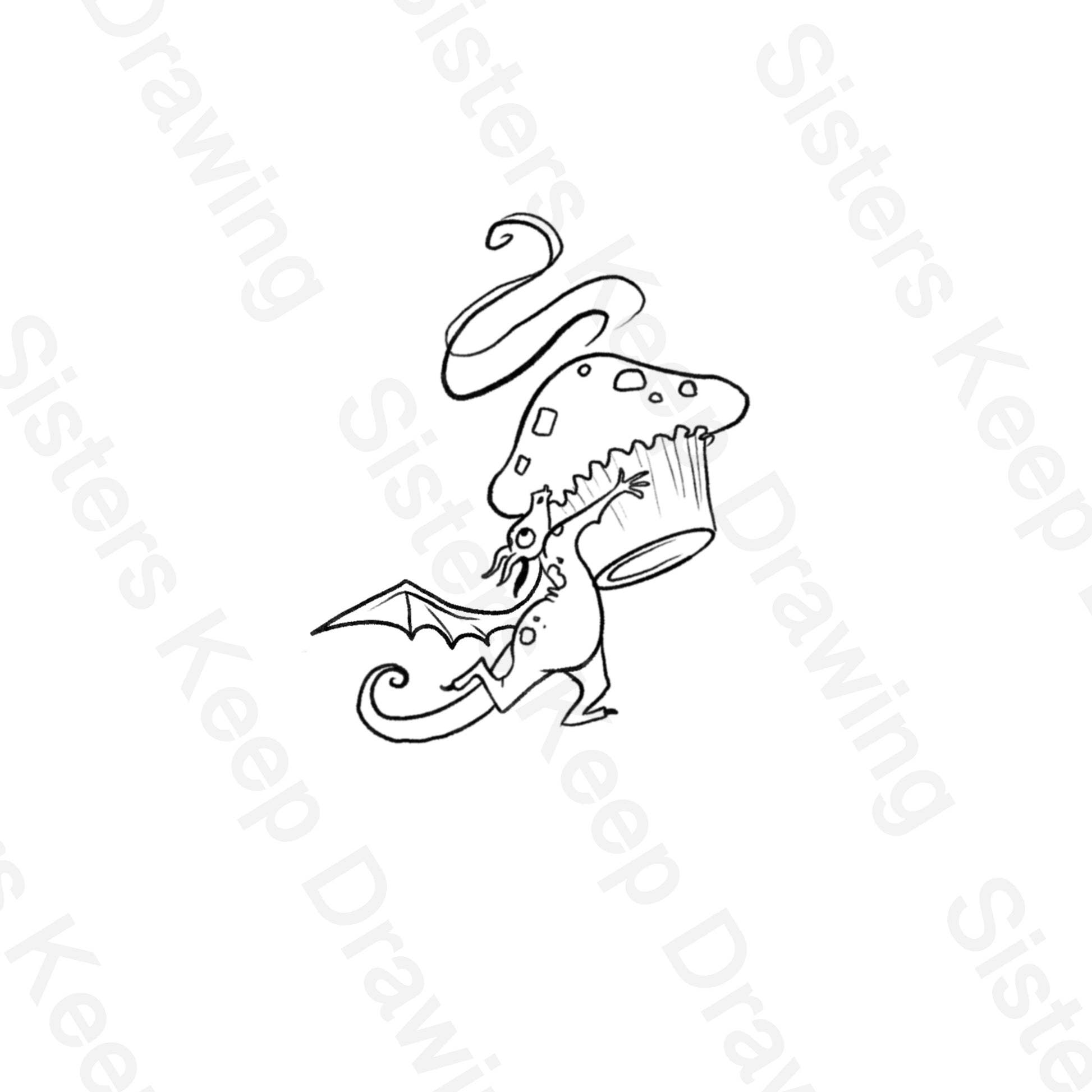Tiny Dragon running with a steaming muffin--Tattoo Transparent Permission PNG- instant download digital printable artw
