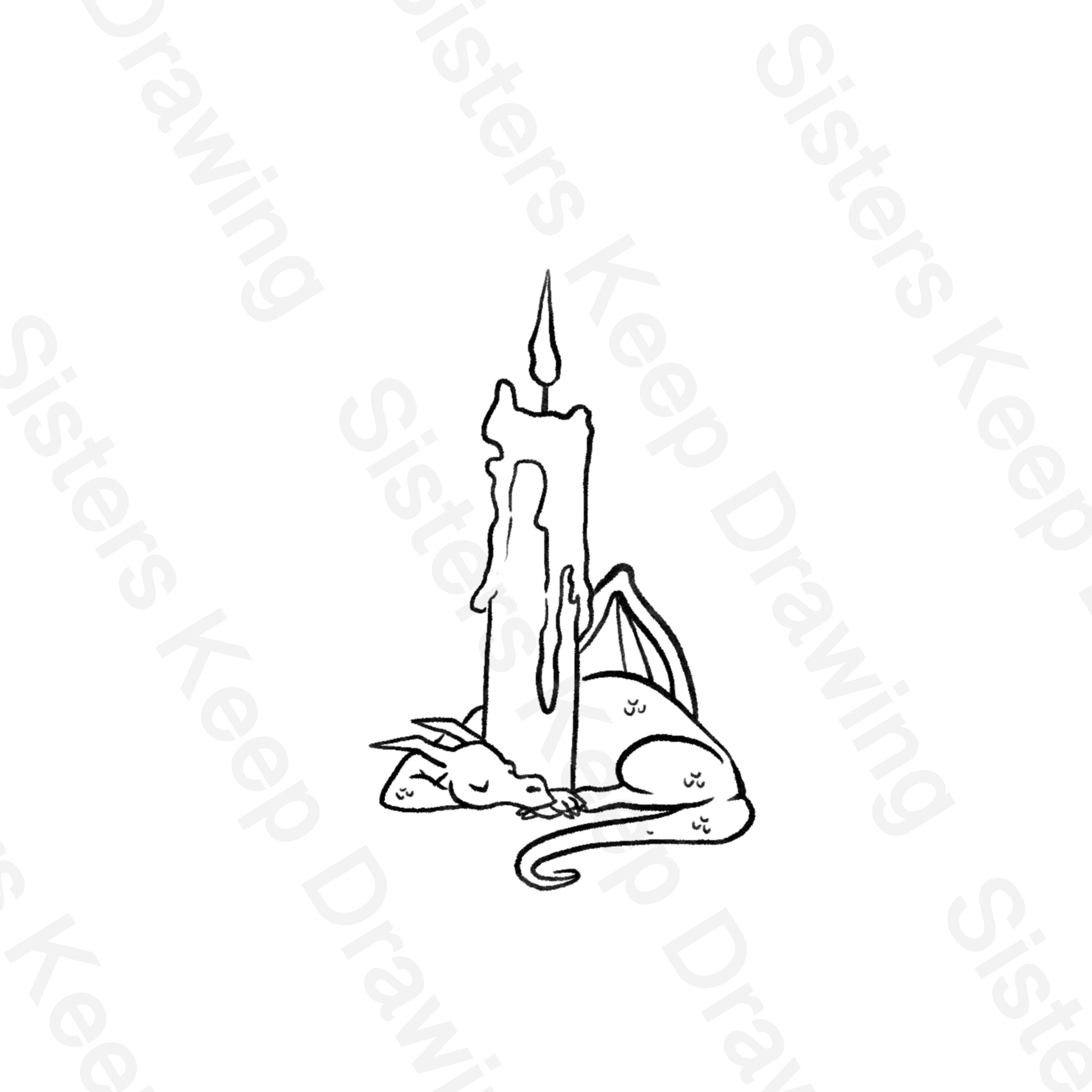 Tiny Dragon sleeping by a candle -Tattoo Transparent Permission PNG- instant download digital printable art