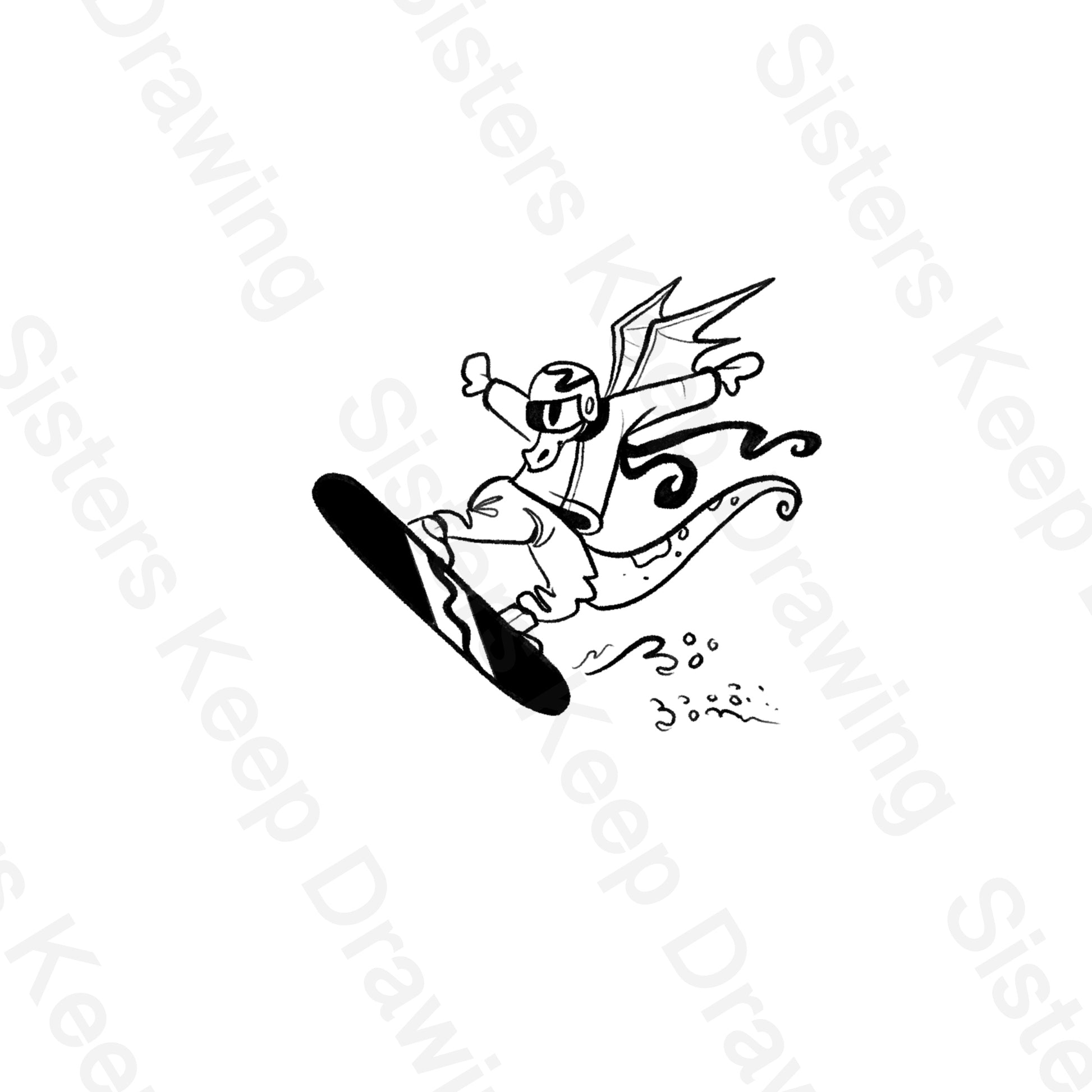 Tiny Dragon snowboarding-Tattoo Transparent Permission PNG- instant download digital printable artw