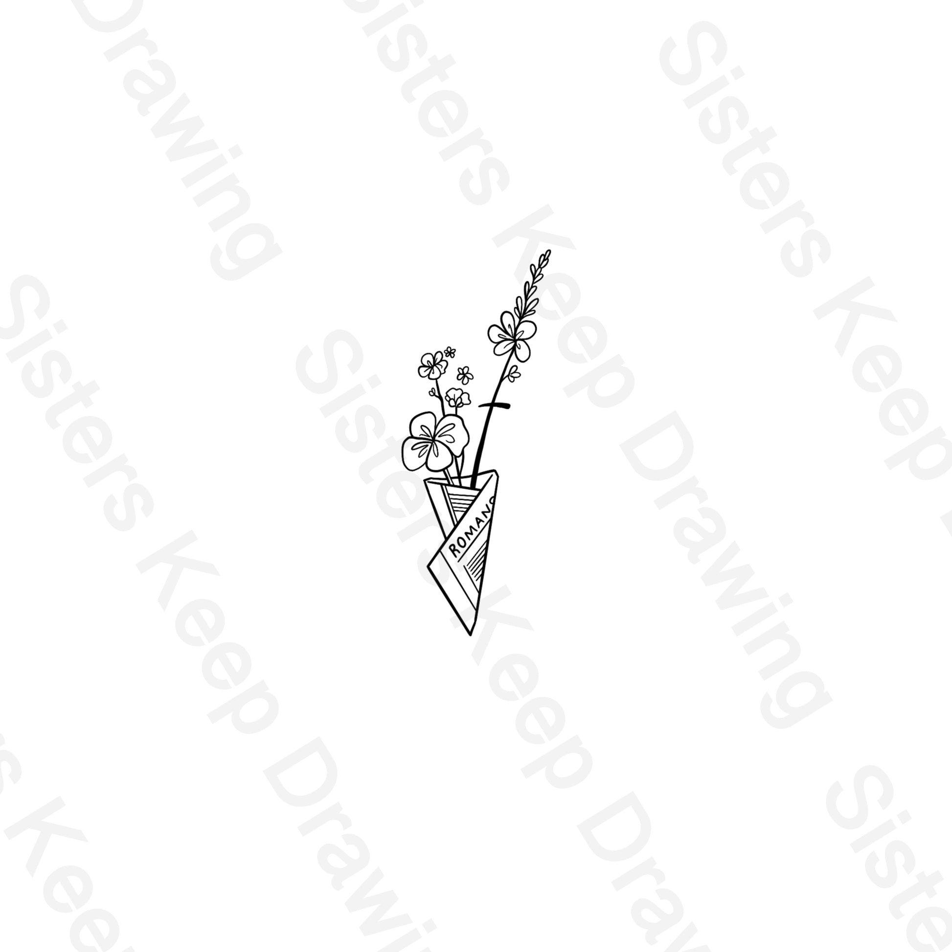 Wildflower cross wrapped in page of Romans- Tattoo Transparent PNG